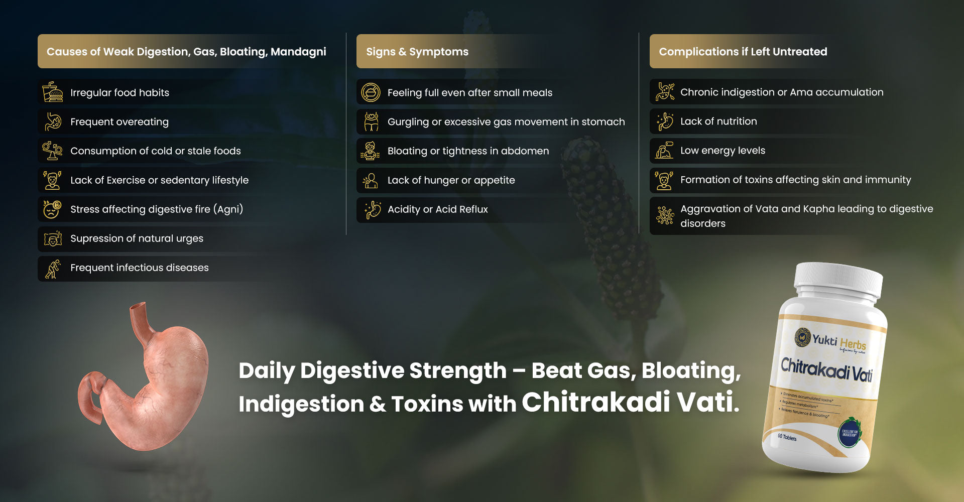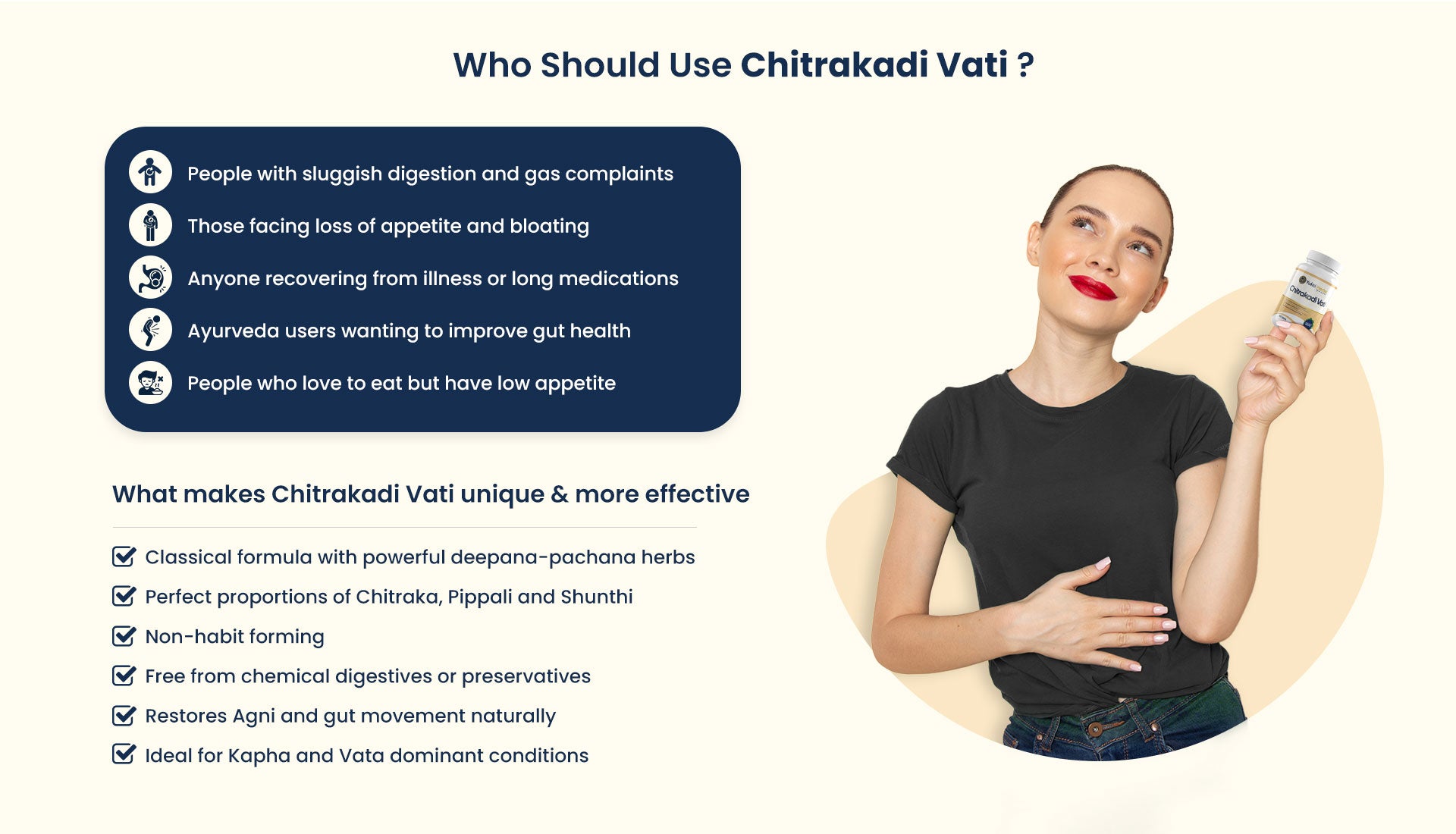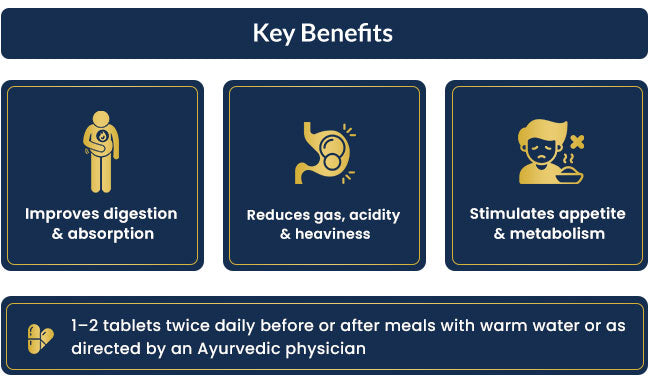 Prefer warm, light meals and try to eat at regular timings daily. Chew your food properly for best results. Don't drink water immediately after the meals.