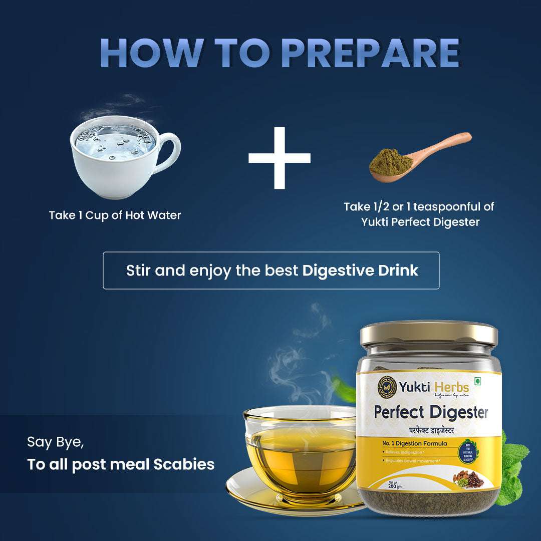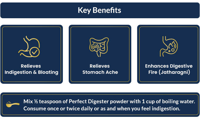 Mix 1 teaspoon of Perfect Digester in a warm or hot cup of water and mix well. Let it stay in for 3-5 minutes for better taste and results. Best time to take it is with or 10-15 min after meals, but you can take it as and when required in case you are having any digestive health issues like gas, bloating, flatulence, indigestion, burping or farting issues etc. It can also be taken before bedtime for a peaceful, light stomach. Use it daily for consistent benefits.
