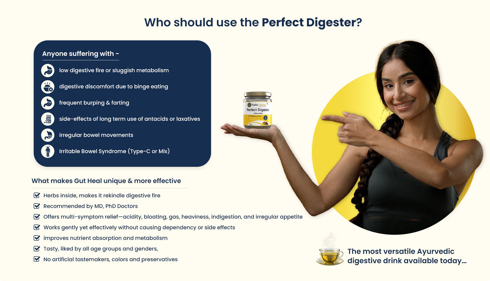 Yes, since it’s a natural herbal formula made up of kitchen safe herbs & spices, Perfect Digester generally doesn’t interfere with other medications. If you are using any antacids or laxatives, Perfect Digester will help you get rid of them and you can easily shift to this holistic solution for best digestive health.